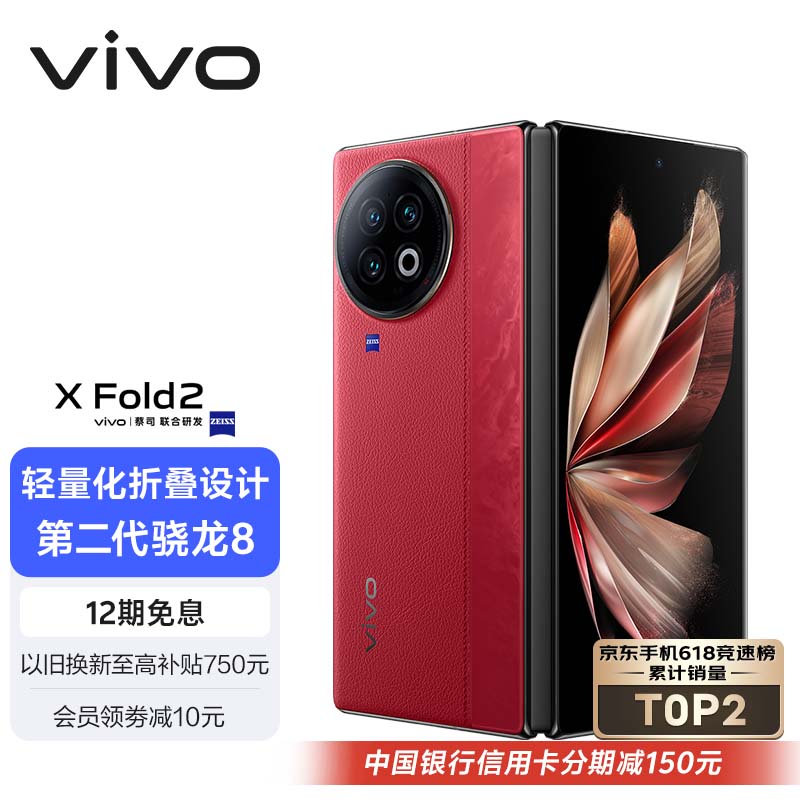 vivo X Fold2 12GB+256GB 华夏红 2K+ E6 120Hz折叠巨幕 120W双芯闪充 第二代骁龙8 折叠屏手机 xfold2价格:7499.00元!