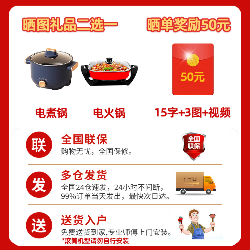 2、洗衣机颜值很高,白色跟我家装修风格搭,物流也很快,很多家电都是买这个牌子的,可以冲