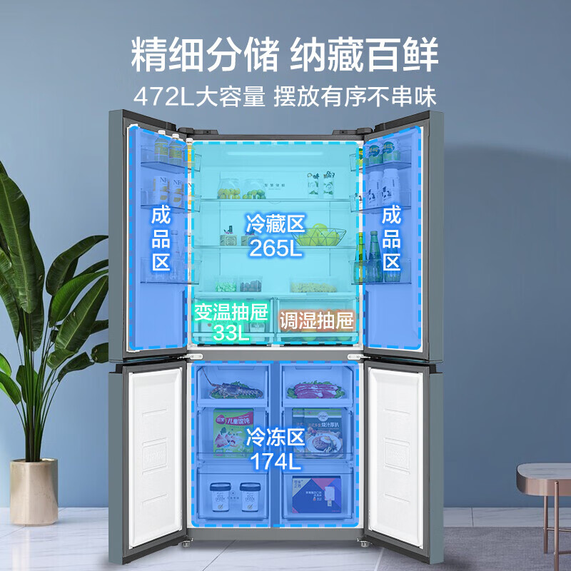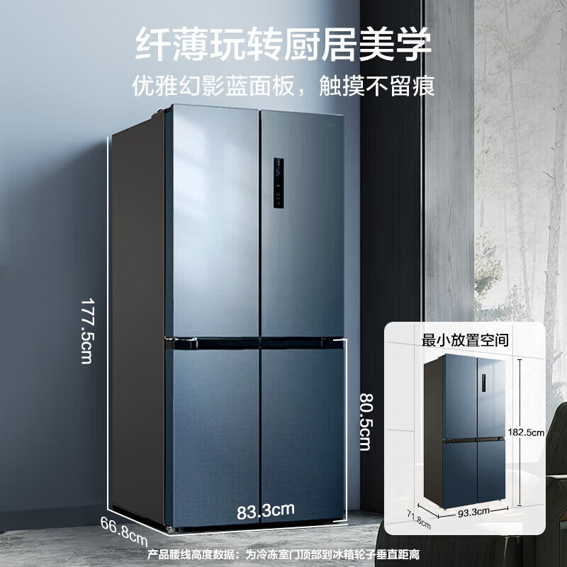 美的(Midea)果润精储472升一级双变频十字双开四开门家用电冰箱京东小家智能家电BCD-472WSPZM(E)超薄大容量价格:3199.00元!