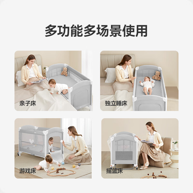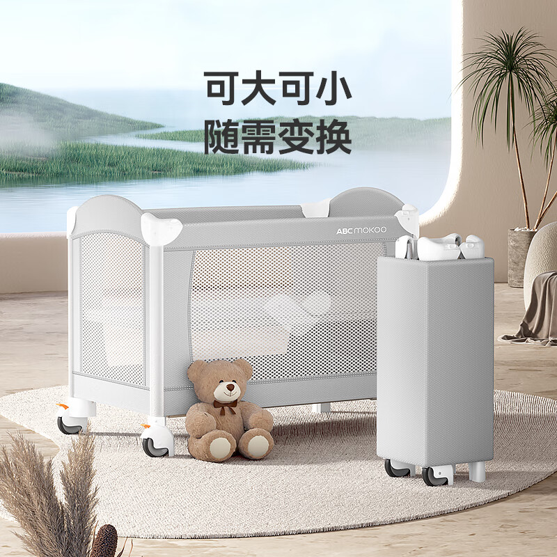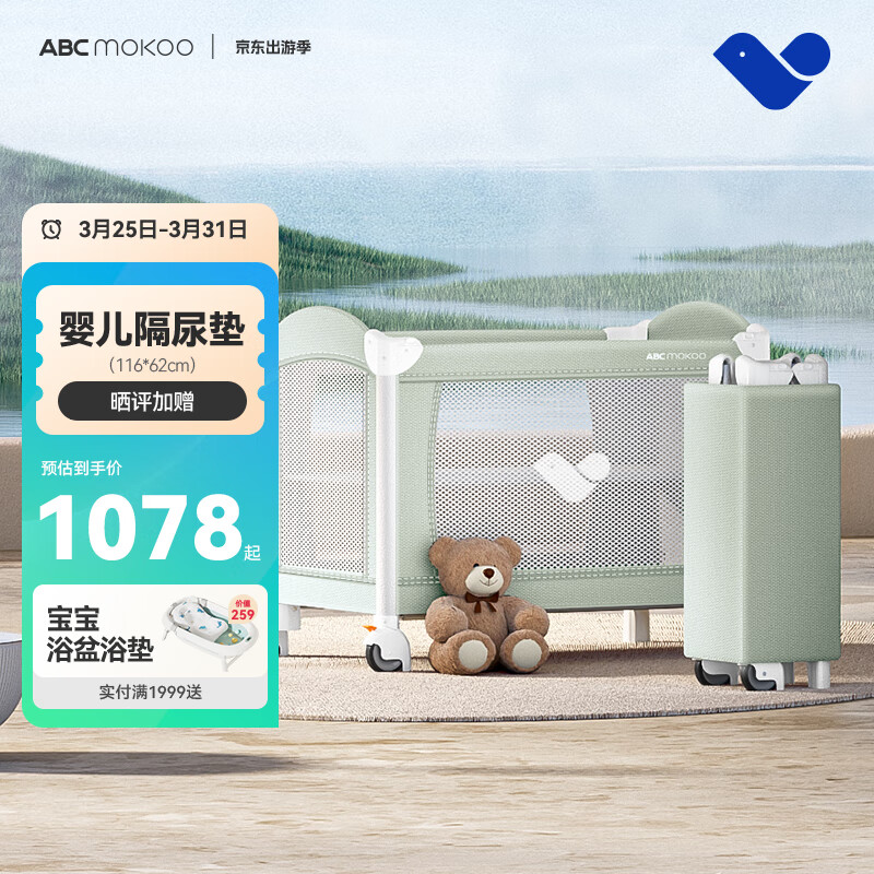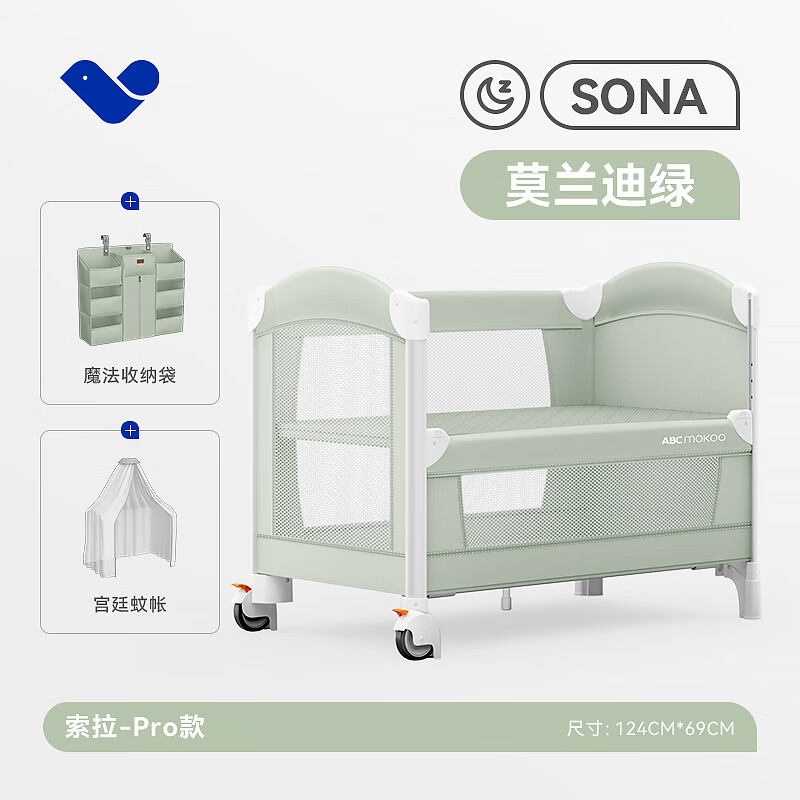ABCMOKOO折叠婴儿床拼接大床多功能新生便携可移动宝宝床-莫兰迪绿PRO款价格:1638.00元!