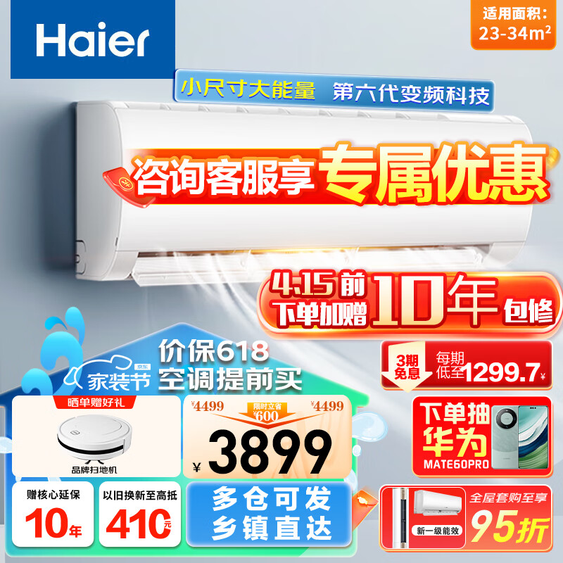 海尔(Haier)2匹空调挂机新一级能效WiFi智控变频速冷暖自清洁PMV节能省电家用卧室挂机空调以旧换新50PAA价格:3899.00元!