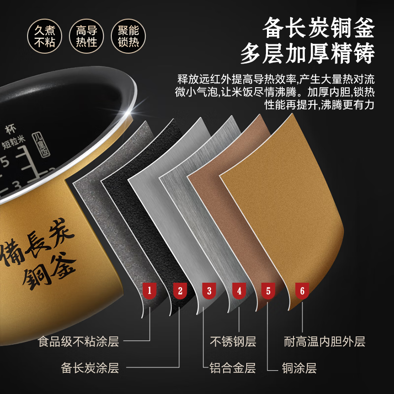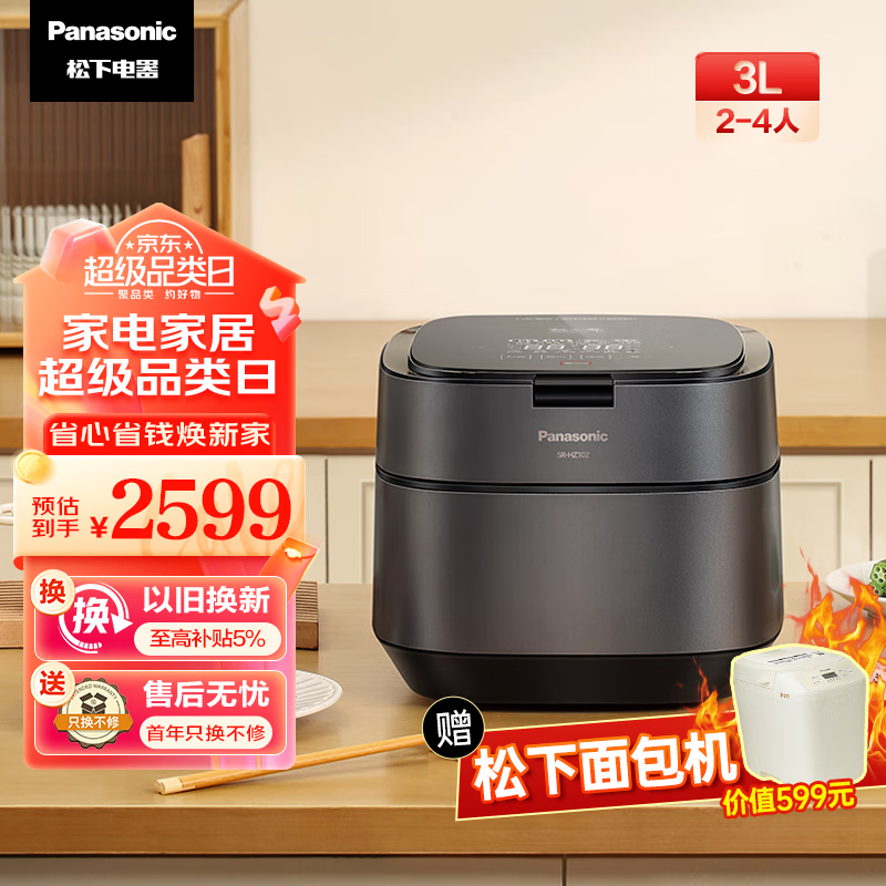 松下(Panasonic)饭之舞电饭煲3L五段IH变频加热电饭煲 家用电饭锅2-6人 备长炭加厚铜釜 可预约 SR-HZ102价格:2599.00元!