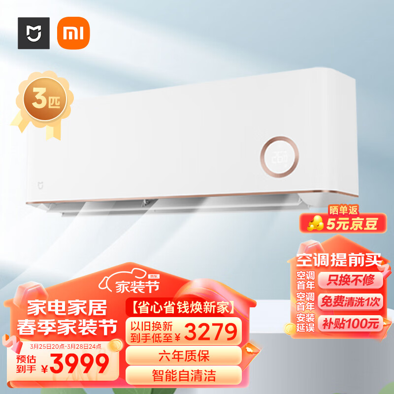 小米3匹 新二级能效 变频冷暖 智能互联 壁挂式卧室挂机 KFR-72GW/D1A2 鎏金版 以旧换新价格:3999.00元!