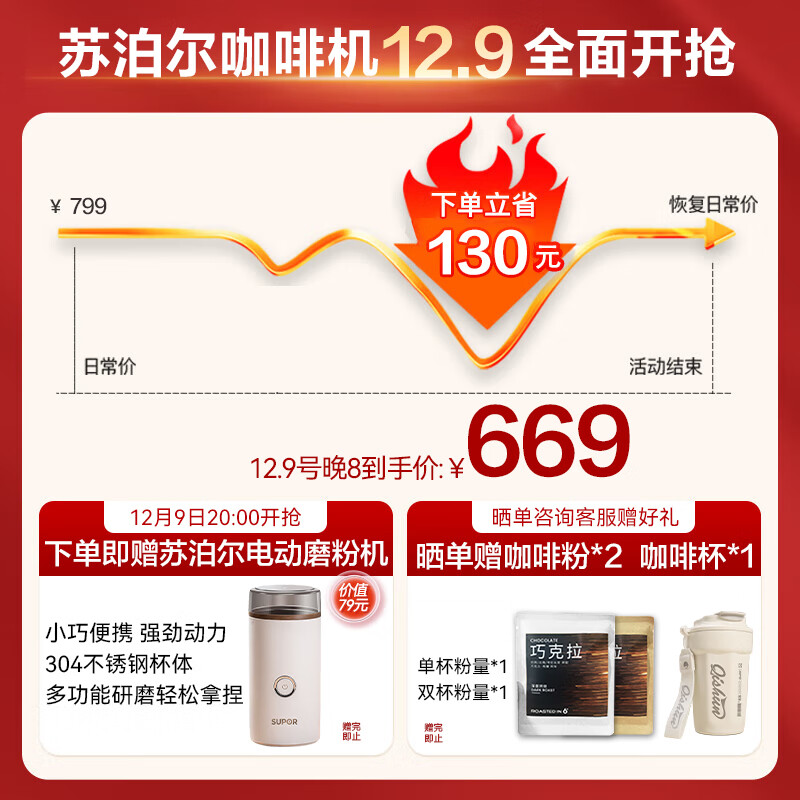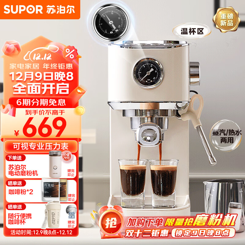 苏泊尔(SUPOR)意式家用浓缩萃取半自动咖啡机 办公室商用小型便携式摩卡手冲咖啡壶 全自动美式打奶泡SW-CFB501价格:669.00元!