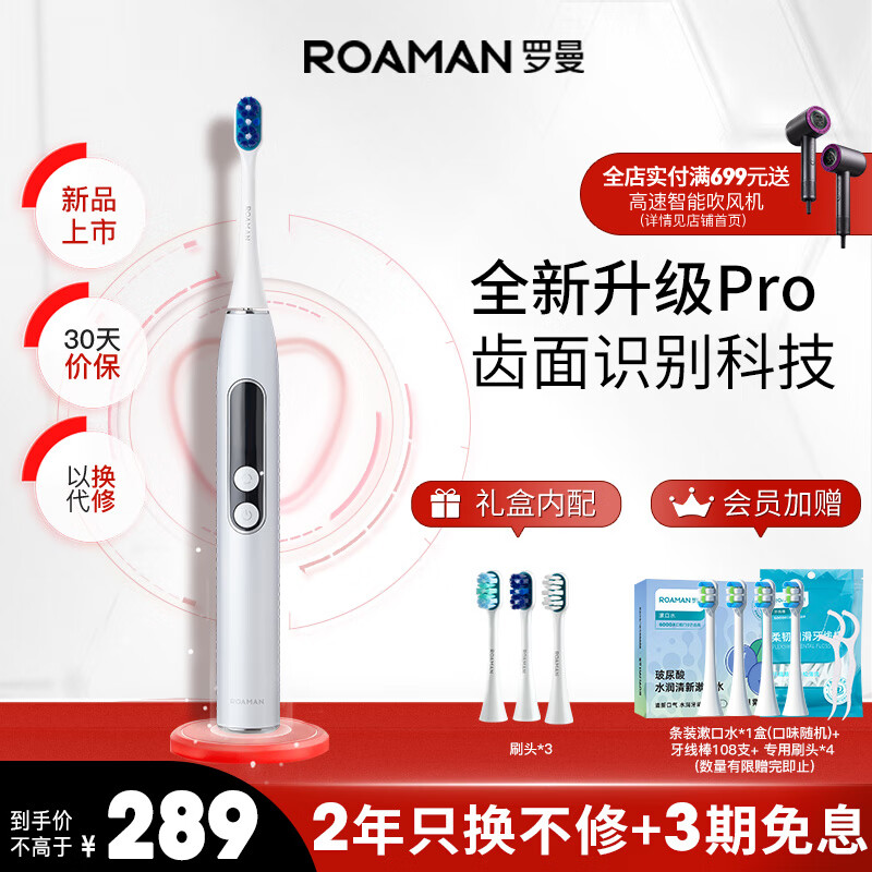 罗曼(ROAMAN)智能声波电动牙刷情侣款生日礼物 5种模式牙医推荐 网红小果刷升级版T10Pro 白色价格:349.00元!
