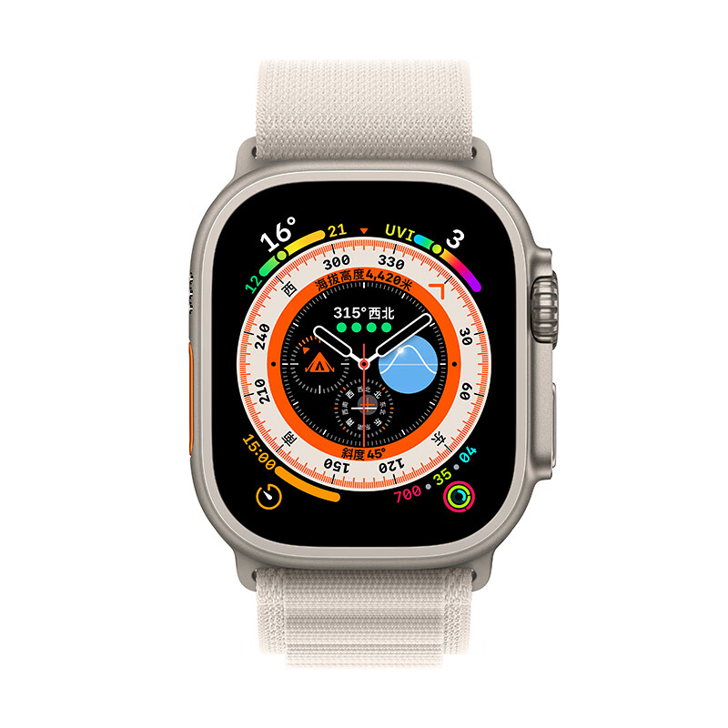 Apple/苹果 Watch Ultra 智能手表GPS+蜂窝款49毫米钛金属表壳星光色高山回环式表带中号 MQFC3CH/A价格:4899.00元!
