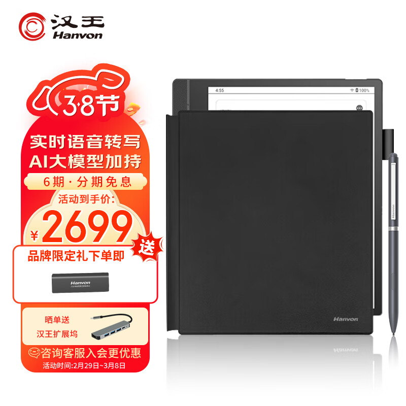 汉王电纸书N10touch 2024款智能办公本10.3英寸电子书阅读器墨水屏手写电纸书 保护套套装价格:2699.00元!