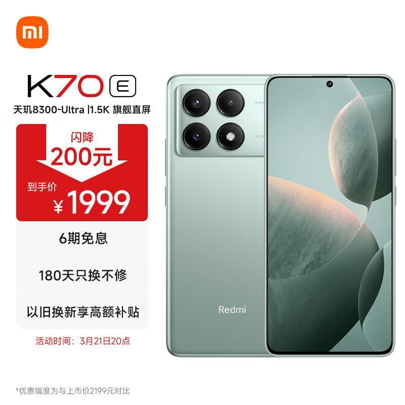 小米Redmi K70E 天玑8300-Ultra小米澎湃OS 12GB+512GB影青 红米5G手机SU7小米汽车互联价格:1999.00元!