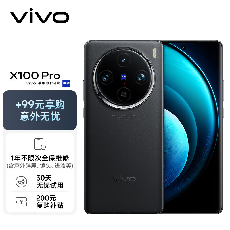 vivo X100 Pro 16GB+1TB 辰夜黑【意外无忧套装】蔡司APO超级长焦 蓝晶×天玑9300 5400mAh蓝海电池 手机价格:6098.00元!
