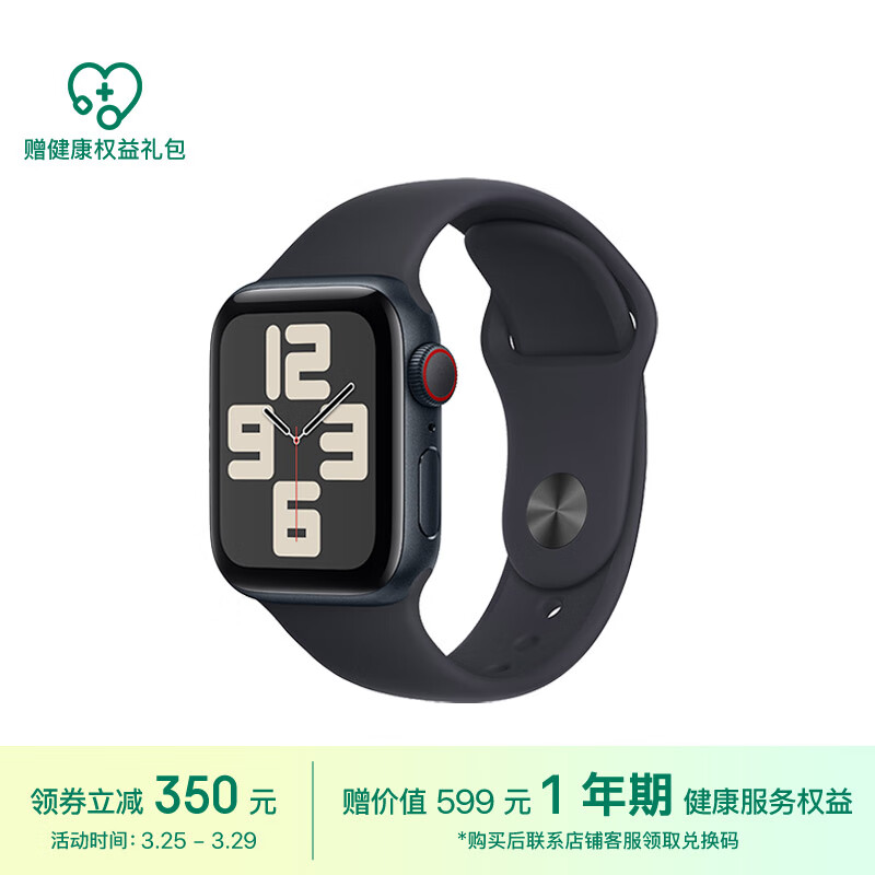 Apple/苹果 Watch SE 2023款智能手表GPS+蜂窝款40毫米午夜色铝金属表壳午夜色运动型表带M/L MRGC3CH/A价格:2349.00元!