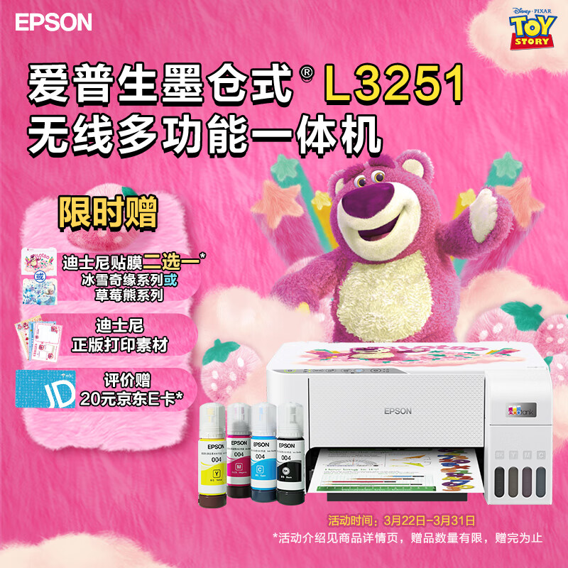 爱普生(EPSON) 墨仓式 L3251彩色打印机 微信打印/无线连接 家庭教育好帮手 (打印、复印、扫描)价格:899.00元!