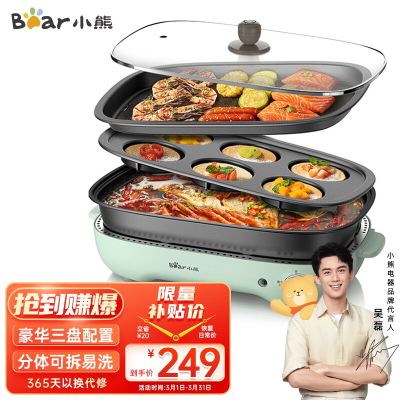 小熊(Bear)多功能锅 多用途锅 料理锅 烤肉锅 火锅专用锅家用电热火锅煎烤涮一体电烤炉网红款 DHG-C40D5 4L价格:249.00元!