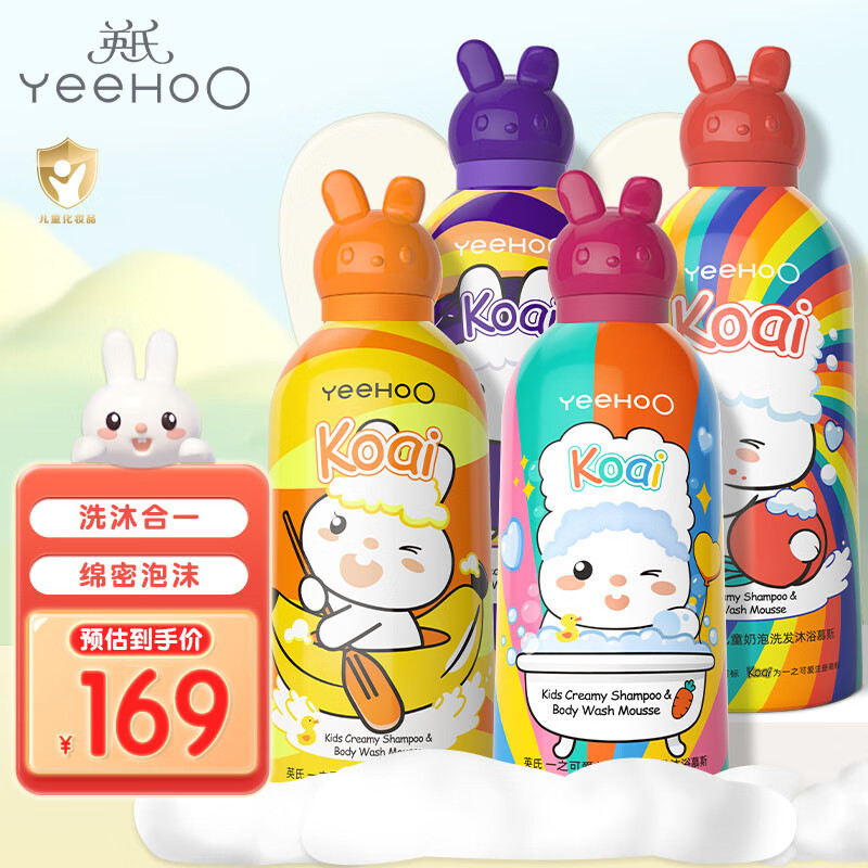 英氏儿童洗发沐浴二合一婴儿沐浴露洗发水小奶泡慕斯4瓶装价格:169.00元!