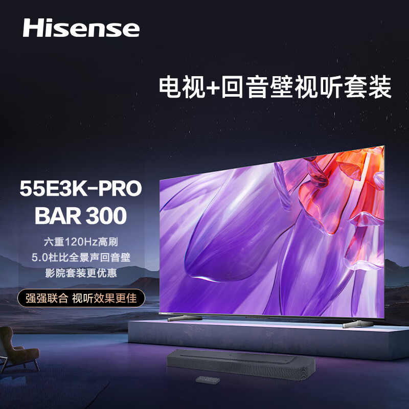 海信电视55E3K-PRO+BAR300沉浸追剧套装 55英寸 4K六重120Hz MEMC防抖 U画质引擎 液晶智能平板电视机价格:4598.00元!