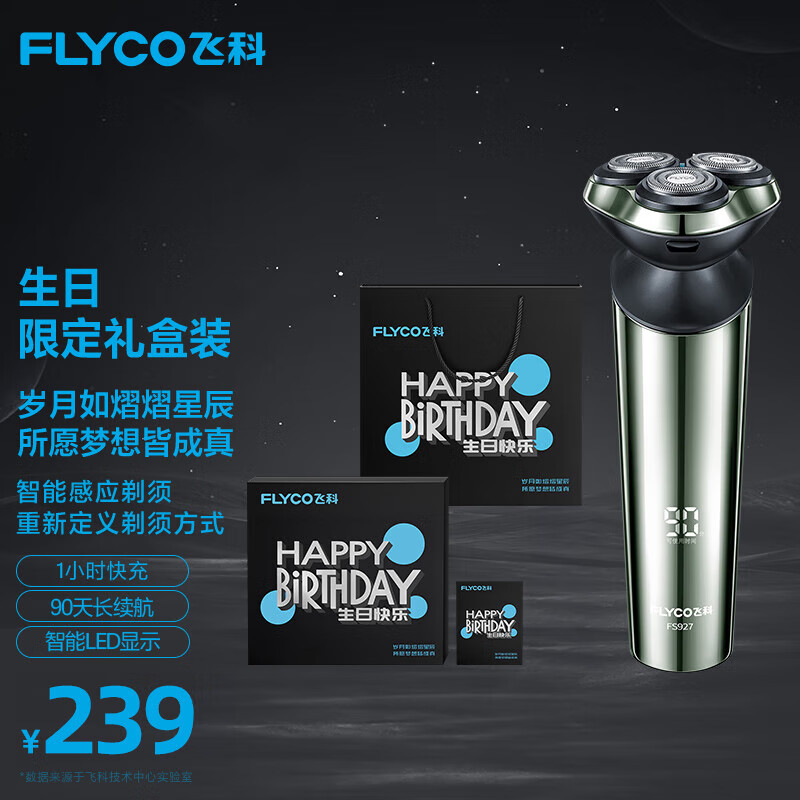 飞科(FLYCO)男士电动剃须刀FS927刮胡须刀须刨 全身水洗干湿双剃 生日节日礼物送男友送老公送父亲-生日限定款价格:658.00元!