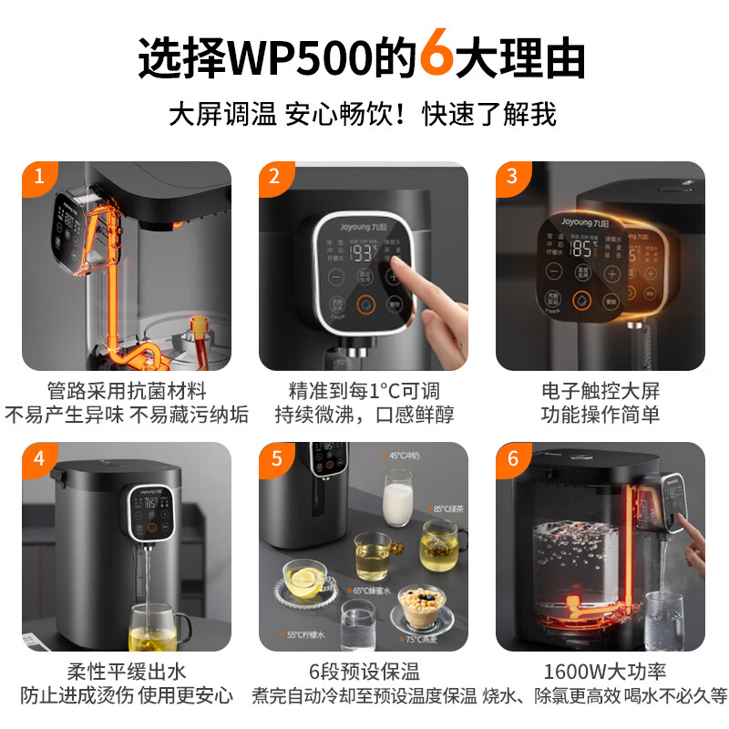 九阳(Joyoung)电热水瓶热水壶 柔性出水技术 无级调温 恒温水壶 家用电水壶烧水壶 K50ED-WP500价格:279.00元!