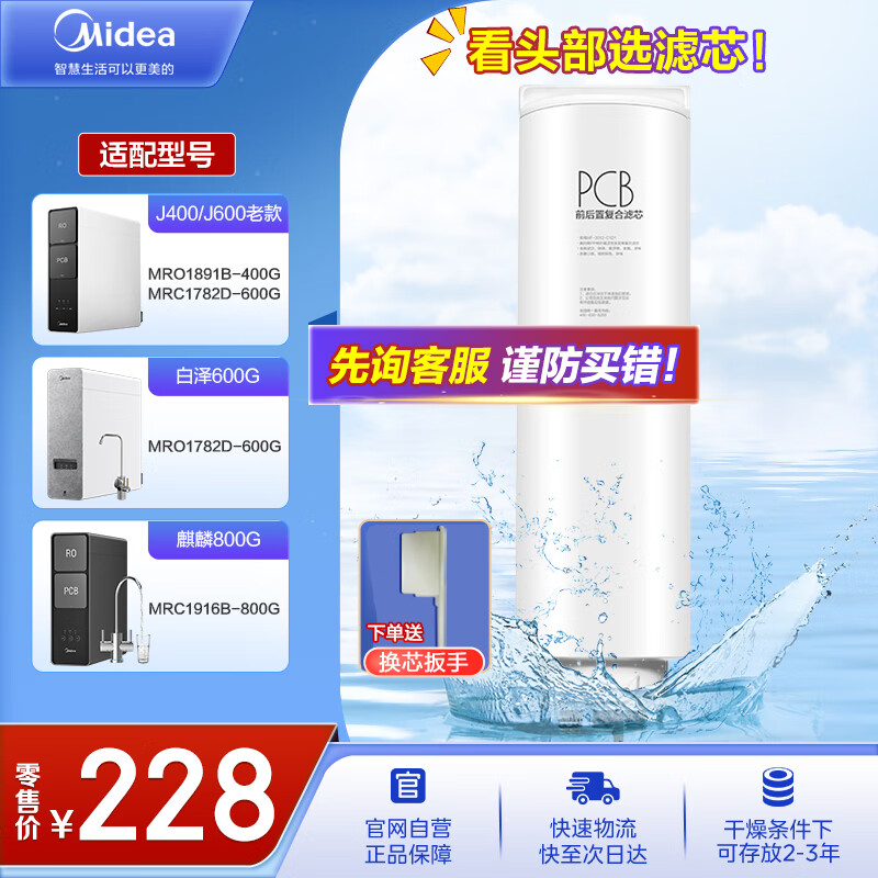 美的净水器滤芯—适用1891B-400G/1782D-600G老款、1916B-800G 1782D-600G 比佛利G5-Best系列-PCB滤芯价格:228.00元!