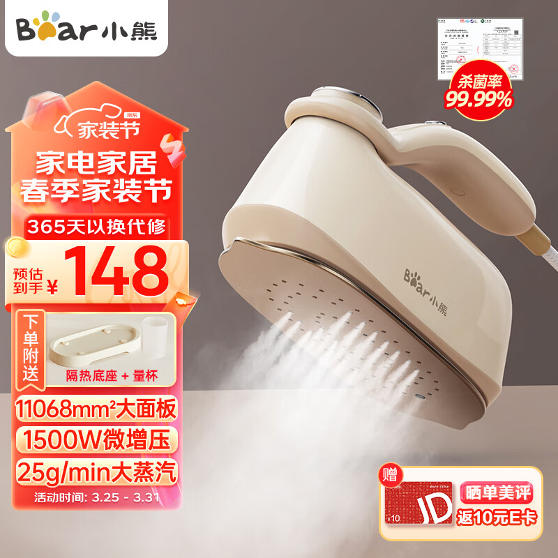 小熊(Bear)手持挂烫机电熨斗家用挂烫大功率增压蒸汽干湿熨烫旅行出差便携小型熨斗团购礼品DYD-B15M5价格:148.00元!
