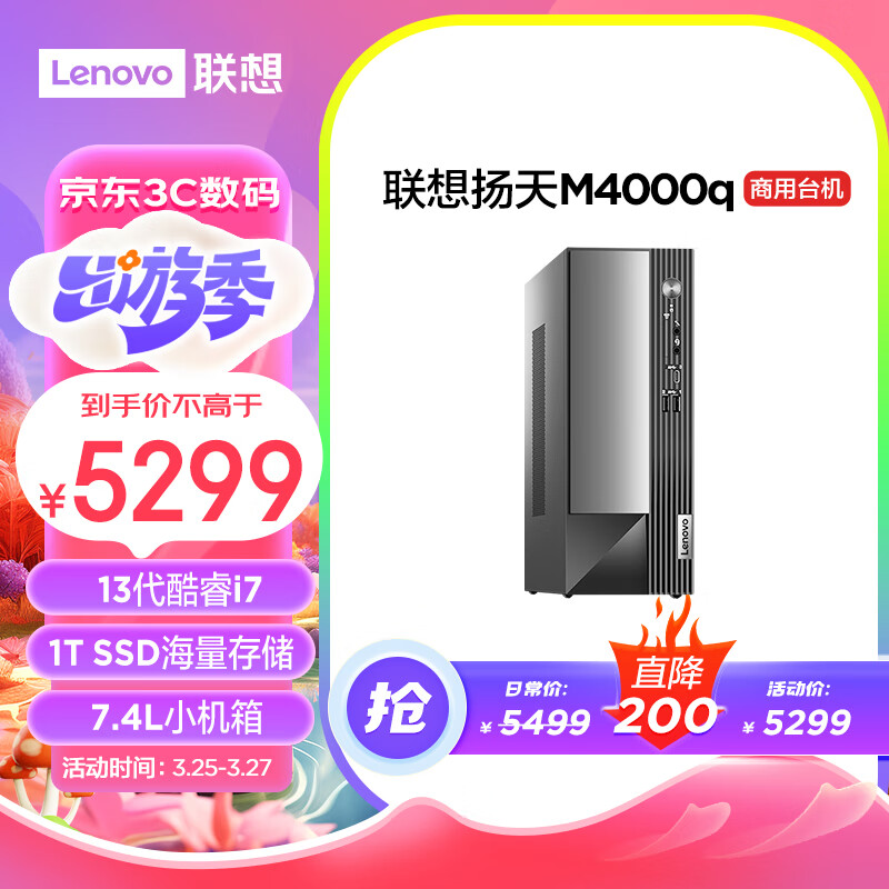 联想(Lenovo)扬天M4000q 商用办公台式电脑主机(酷睿13代i7-13700 16G 1TB SSD)价格:5299.00元!