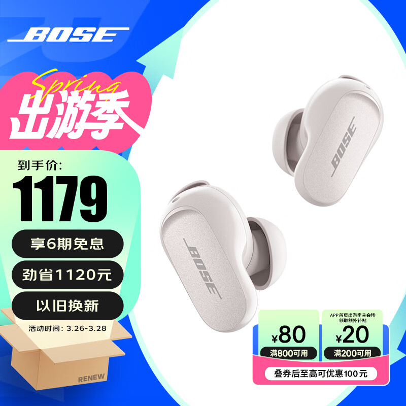 Bose QC消噪耳塞II-白色 大鲨二代 真无线入耳式蓝牙主动降噪耳机耳麦 智能音场调校 毫秒级精准消噪价格:1399.00元!