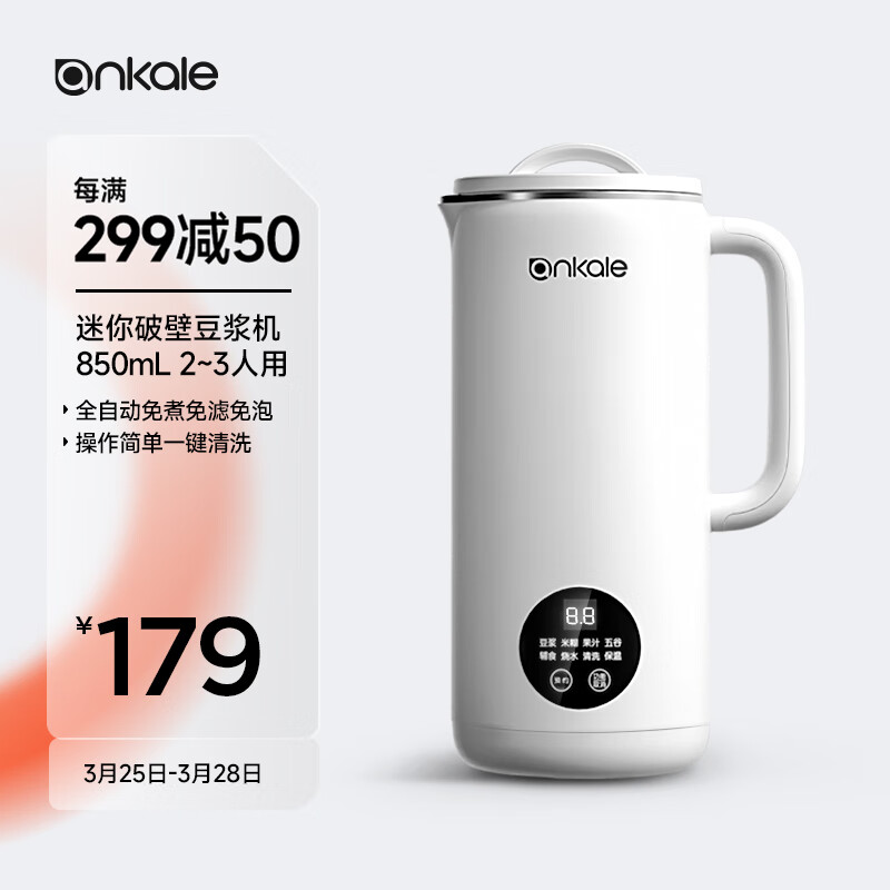 ankale破壁机 豆浆机 迷你小型家用免洗 五谷杂粮全自动免煮 破壁豆浆机 优雅白/850mL价格:179.00元!