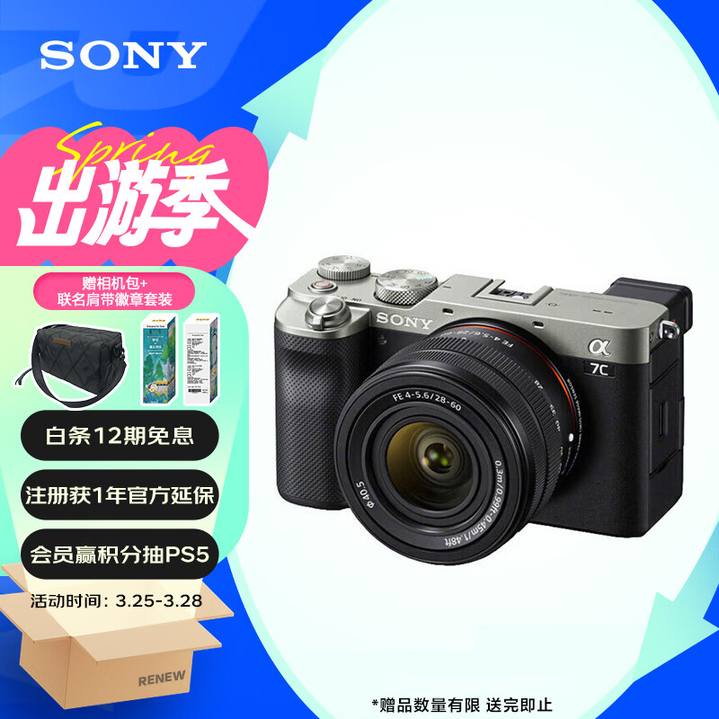 索尼(SONY)Alpha 7CL 全画幅微单数码相机 标准镜头套装 轻便小巧 实时眼部对焦 银色(a7cl))价格:11599.00元!