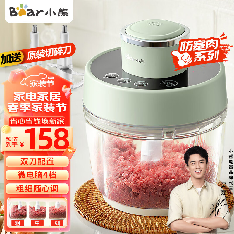小熊(Bear)绞肉机家用 绞馅机 碎肉机 电动多功能料理搅拌打肉机饺子肉馅蒜蓉机 可调粗细搅肉机QSJ-D03X1 2L价格:158.00元!