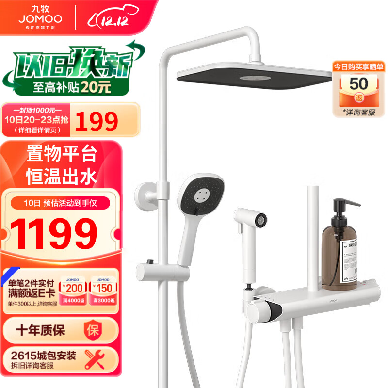 九牧JOMOO淋浴花洒套装雅白置物喷枪恒温除垢26164-644/KB-1价格:1399.00元!