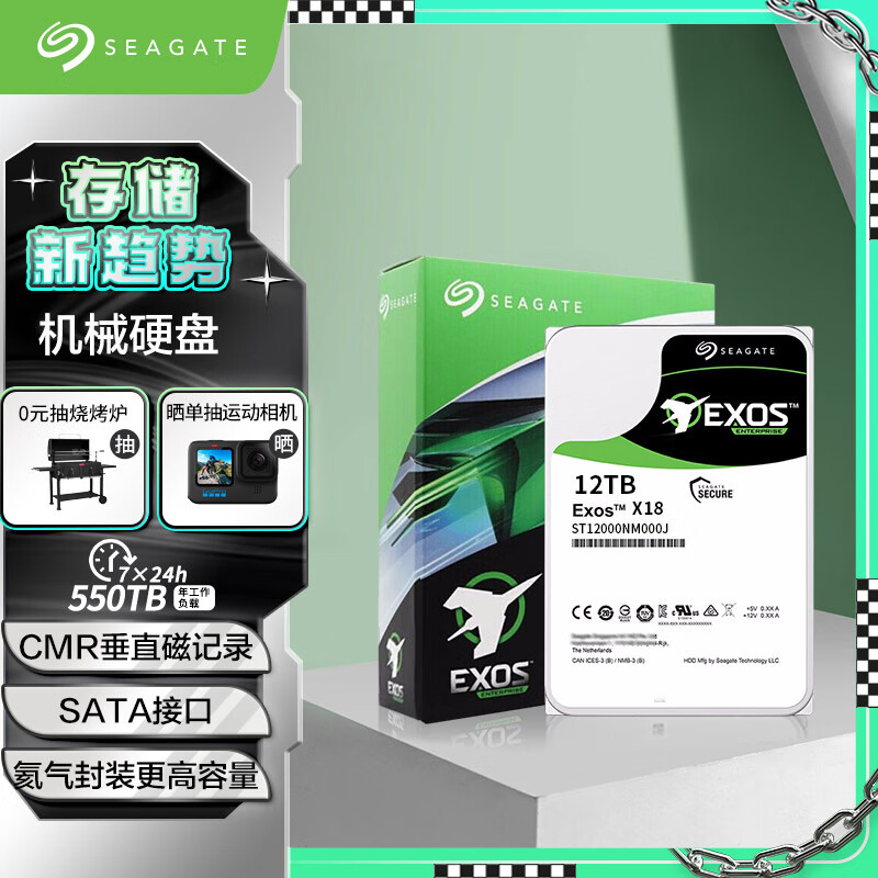 希捷(SEAGATE)企业级硬盘 12TB 256MB 7200RPM CMR垂直 SATA 希捷银河Exos X18系列 服务器硬盘价格:2249.00元!