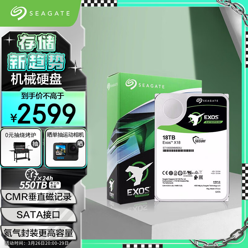 希捷(SEAGATE)企业级硬盘 18TB 256MB 7200RPM CMR垂直 SATA 希捷银河Exos X18系列 服务器硬盘价格:2599.00元!