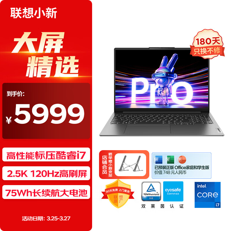 联想笔记本电脑小新Pro16超能本 高性能标压酷睿i7 16英寸轻薄本 16G 1T 2.5K高刷护眼屏 灰 游戏办公价格:5999.00元!