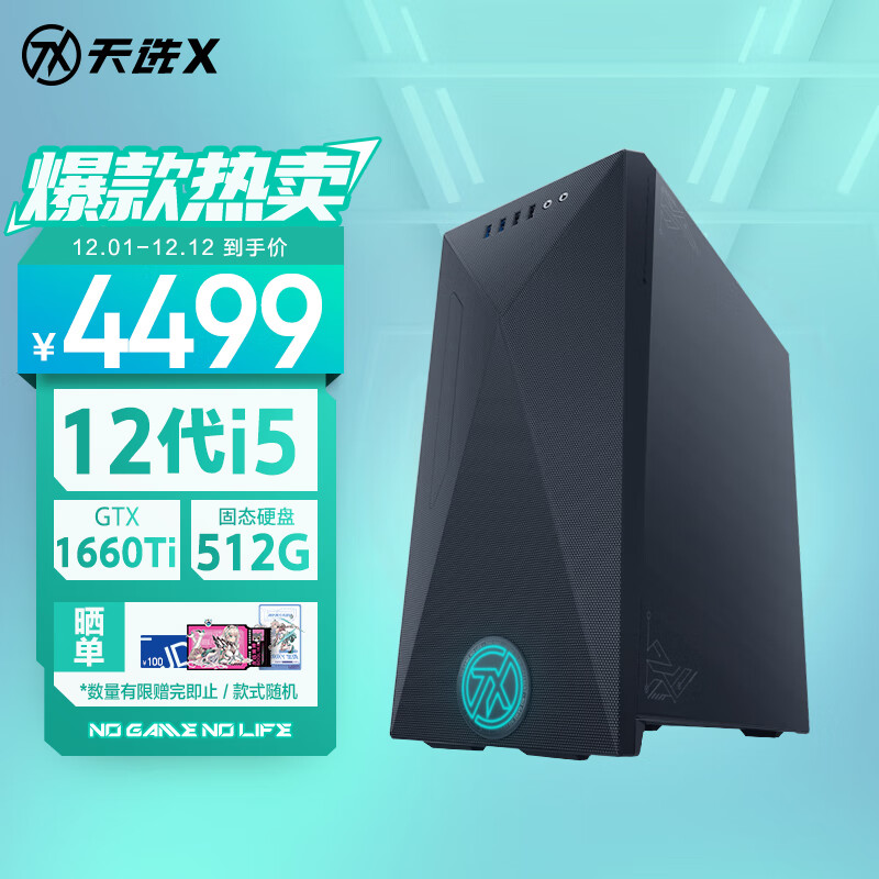 华硕天选X 2022电竞游戏台式机电脑主机(i5-12400F 16G 512GSSD GTX1660Ti 6G独显 wifi)价格:4499.00元!