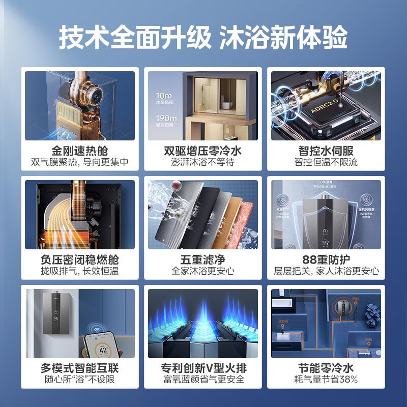 2、我非常满意购买了美的16升燃气热水器。它不仅外观时尚,而且使用简便,热水供应稳定可靠。无论是早晨洗漱还是晚上洗澡,都能享受到温暖舒适的洗浴体验。性价比也非常高,物超所值!强烈推荐给需要热水器的朋友们!