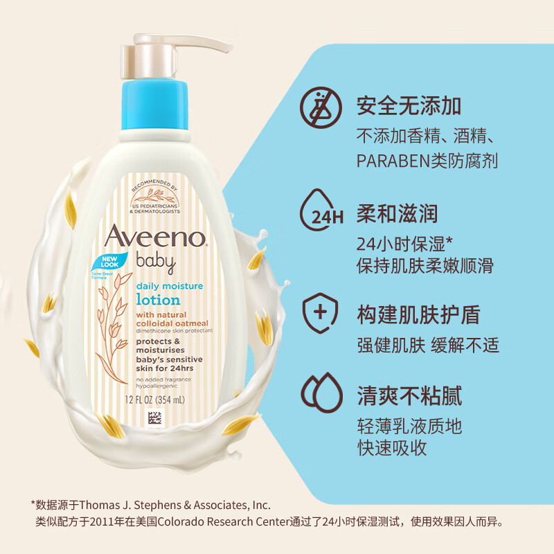 艾惟诺(Aveeno)婴儿润肤乳儿童面霜宝宝身体乳每日倍护润肤乳无香型354ml价格:91.00元!