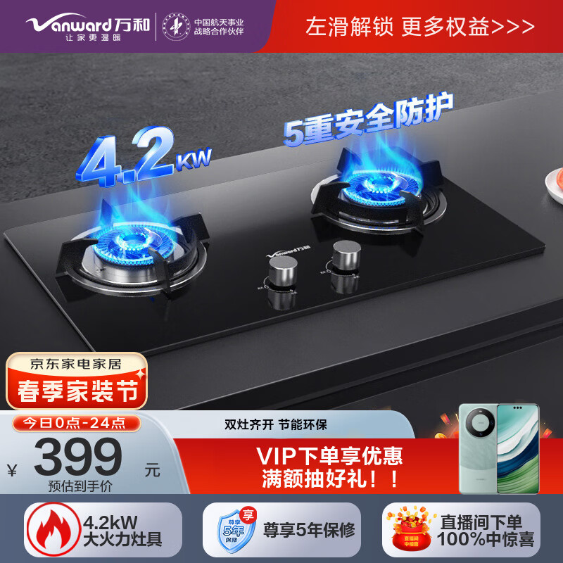 万和(Vanward)燃气灶4.2kW大火力 嵌入式台式两用灶具家用双灶 煤气炉煤气灶钢化玻璃 JZY-B3L20(液化气)价格:397.00元!