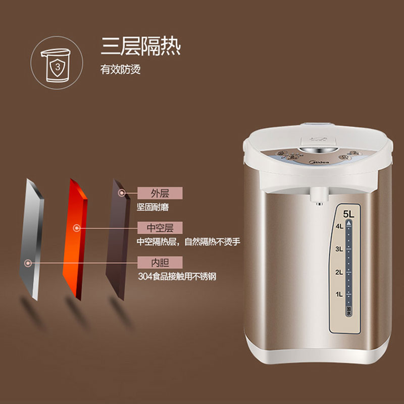 美的(Midea)电热水瓶热水壶电水壶304不锈钢热水瓶电热水壶净甜5L大容量烧水壶智能控温恒温暖水壶701-50T价格:199.00元!