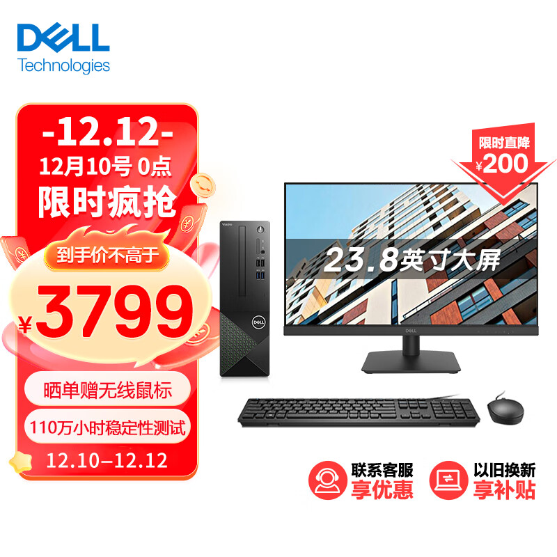 戴尔(Dell)成就3020 台式电脑主机 高性能整机 (13代i5-13400 16G 512GSSD三年上门)23.8英寸大屏显示器价格:3799.00元!