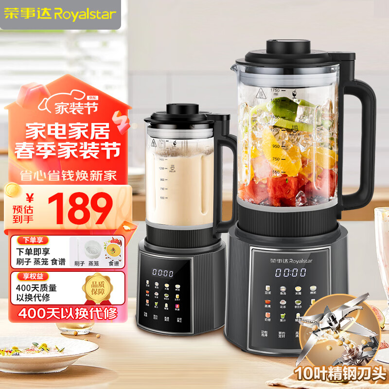 荣事达(Royalstar)破壁机家用豆浆机料理机榨汁机搅拌果汁机多功能预约定时婴儿免滤辅食机RZ-328H(D)价格:189.00元!