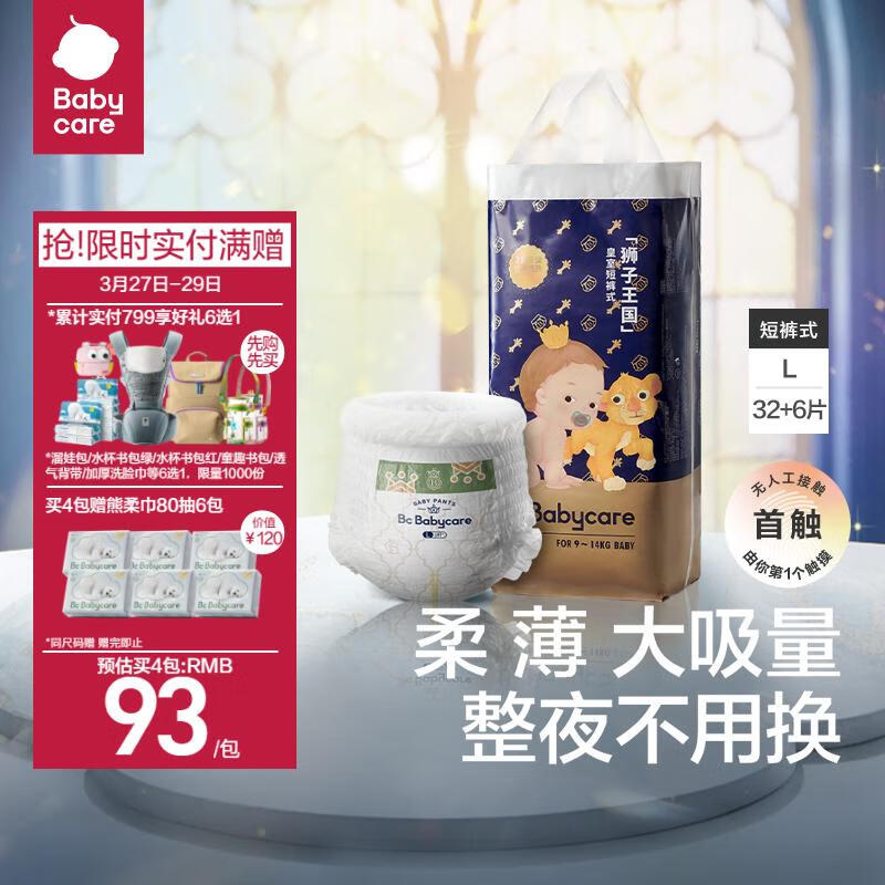 babycare皇冠LaLa裤皇室狮子王国拉拉裤L32+6片(9-14kg)婴儿尿不湿成长裤价格:150.00元!