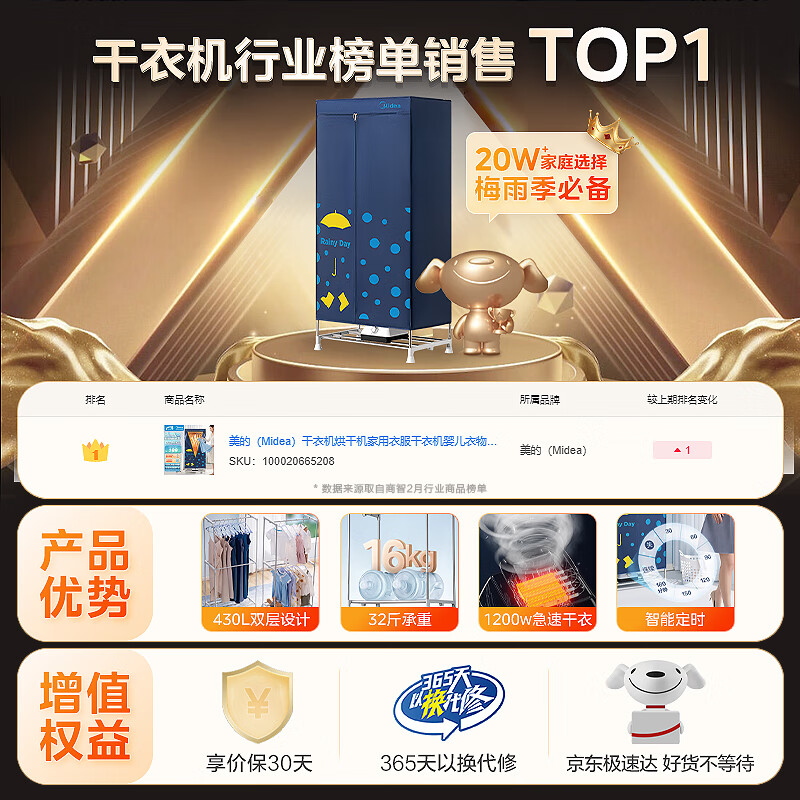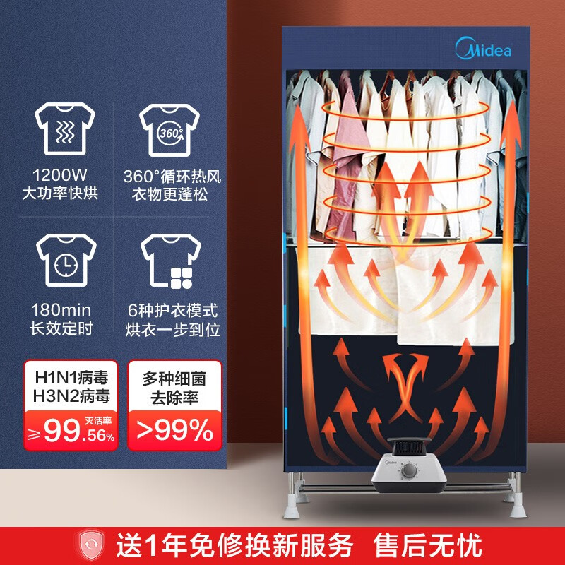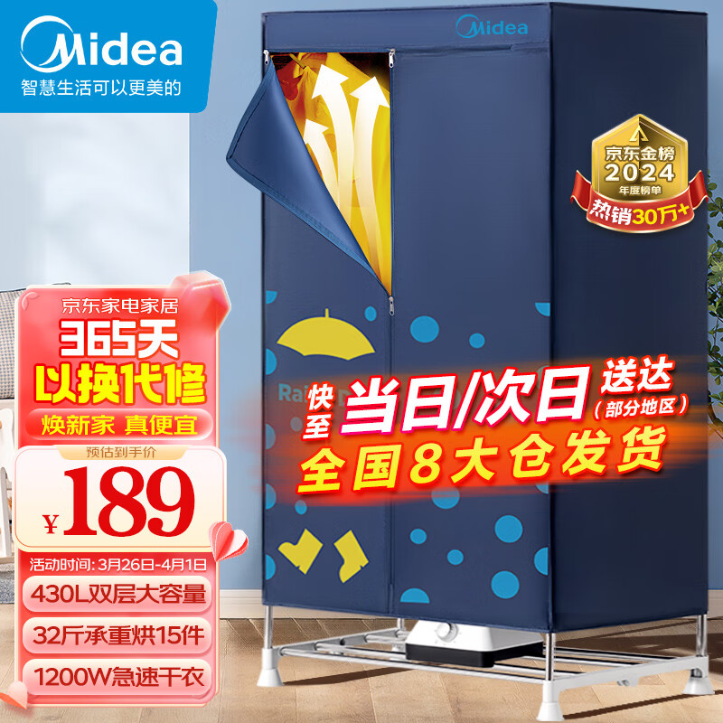 美的(Midea)【32斤大承重】干衣机烘干机家用衣柜婴儿衣物暖风烘衣机风干机除菌柔烘 430L容量双层HBGJ12A1价格:189.00元!