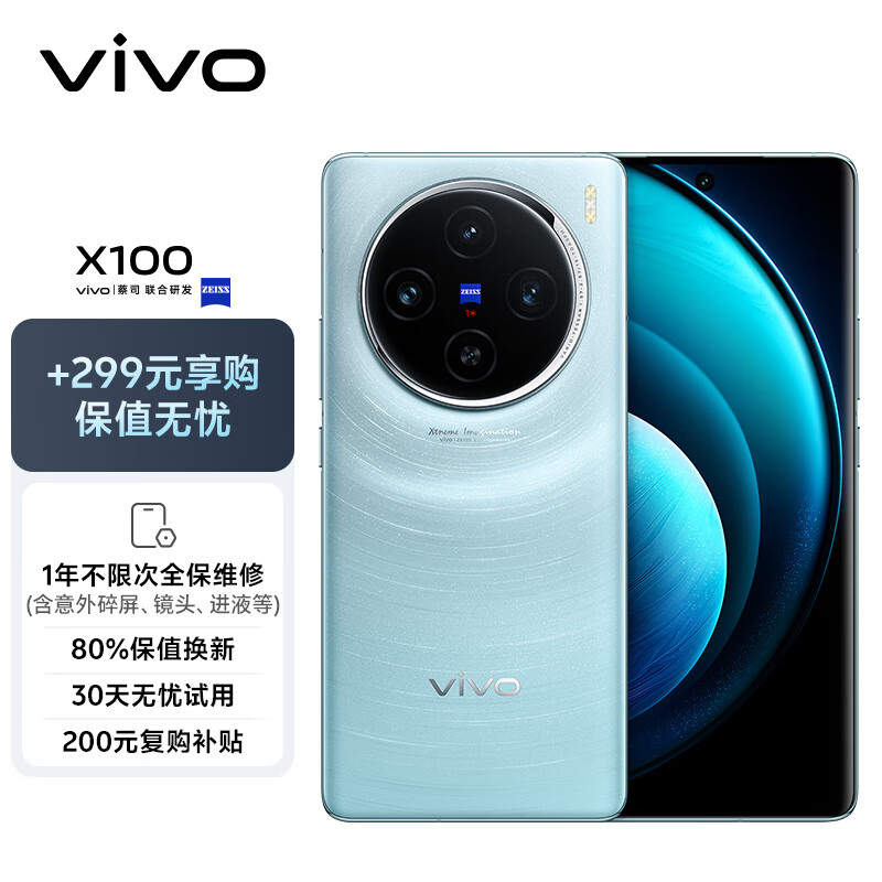 vivo X100 16GB+512GB 星迹蓝【保值无忧套装】蓝晶×天玑9300 5000mAh蓝海电池 蔡司超级长焦 5G 拍照 手机价格:4898.00元!