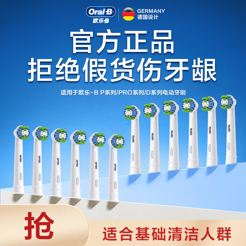 欧乐B电动牙刷头 成人精准清洁型12支装 EB20-12 适配成人D/P/Pro系列圆头 标准型软毛智能牙刷刷头盒装价格:339.00元!