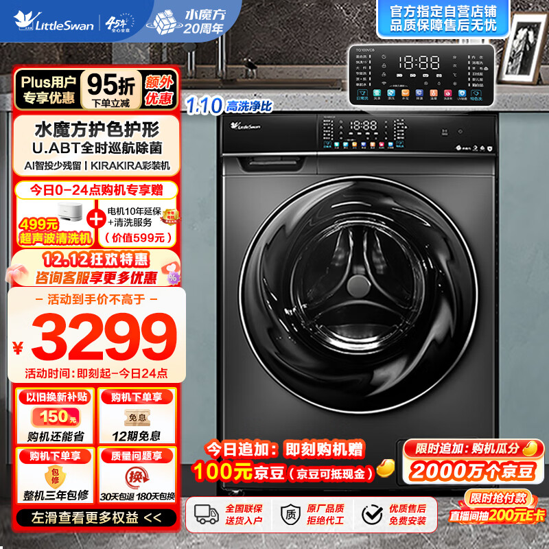小天鹅(LittleSwan)滚筒洗衣机全自动 水魔方系列【TG100VC8】 升级冷水洗 1.1洗净比 超薄10公斤以旧换新价格:3299.00元!
