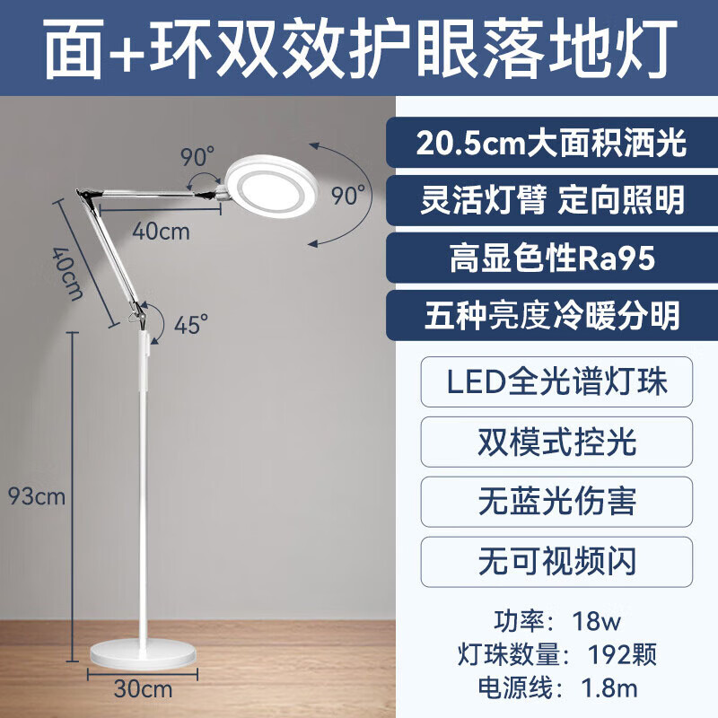 1、台灯亮度足够,灯盘够大,均匀性很好,落地灯可以省去不少桌面空间。
