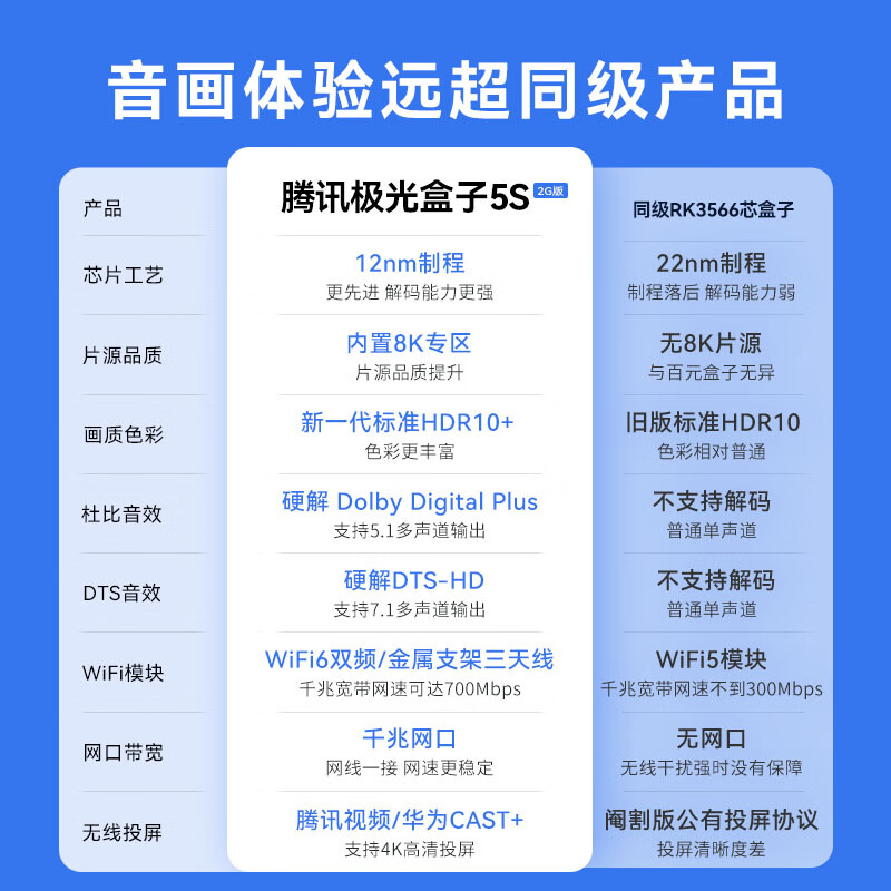腾讯腾讯极光盒子5s配置参数: