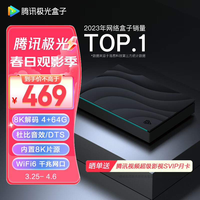 腾讯极光盒子5S 智能网络电视机顶盒 8K解码 WiFi6双频 DTS杜比音效 4+64G HDR10+ 千兆网口 云游戏价格:549.00元!