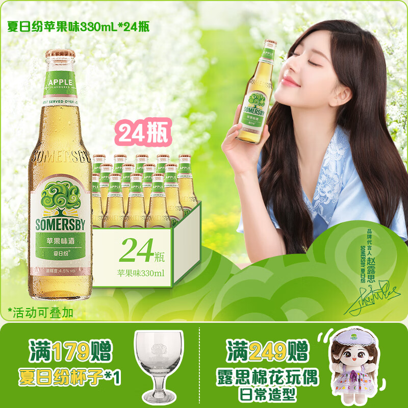 夏日纷Somersby夏日纷苹果味果酒 微醺甜酒 整箱 330ml*24瓶装价格:199.00元!