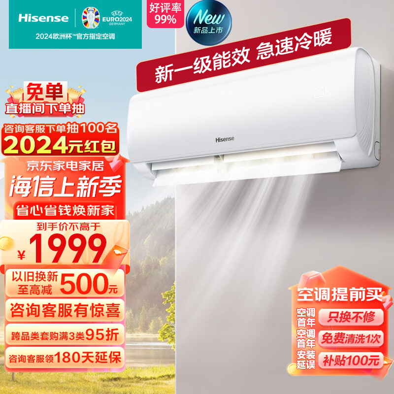 海信(Hisense)1.5匹 速冷热 新一级能效变频冷暖 高温自清洁APP远程遥控壁挂式卧室空调挂机KFR-34GW/E270-X1价格:1899.00元!