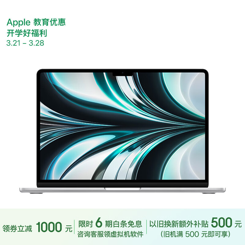 Apple/苹果2022款MacBookAir【教育优惠】13.6英寸M2(8+8核)8G256G银色轻薄笔记本电脑MLXY3CH/A价格:8199.00元!