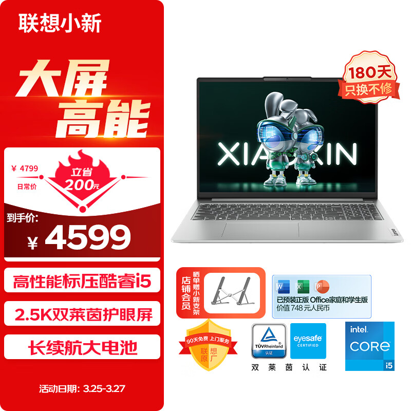 联想笔记本电脑小新16超薄本 高性能标压酷睿i5 16英寸轻薄本 16G 1T 2.5K护眼屏 灰 办公学生商务价格:4597.00元!
